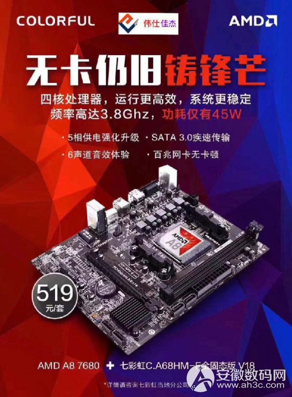 2018年尾声,AMD推出了第七代APU两款入门级新品- A8-7680和A6-7480处理器,这两款入门级APU上市即搭配品牌主板推出了惊爆DIY市场的超高性价比板U套装,让广大用户激动不已。对于热衷于入门级处理器的广大用户来说这是一个不容错过的绝佳机会。此次AMD推出的三款板U套装的售价非常平易近人,最低只要519元,可以说相当的划算,而且性能方面在日常办公及主流游戏也能轻松应对。对于如此高性价比的板U套装促销,广大用户一定会第一时间前去抢购,下面就来详细介绍下这三款板U套装。