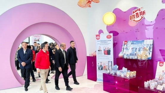 在阿麦斯皮乐士剥皮软糖展区,马恩多现场演示可“剥皮”食用的创意工艺。阿迪昂总统见后惊喜连连,直呼“unique!”,并欣然品尝。随行代表团中,总统女儿面对众多媒体记者,手捧皮乐士软糖大袋包装,难掩喜爱之情:“这款糖果非常美味,我特别喜欢。”
